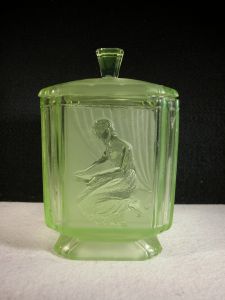 In the 1880’s they used popular designs from the leading artists in the Arts and Crafts movement and reproduced artists drawings on pressed glass.